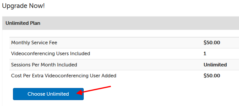 4. If you are on a Value plan, you can scroll down to the bottom of the page to upgrade to Unlimited.