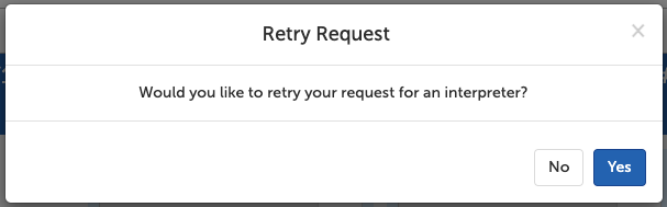 If the interpreter fails to respond to any of these countdowns within their provided durations, the option for you to Retry the request for an interpreter will pop up.